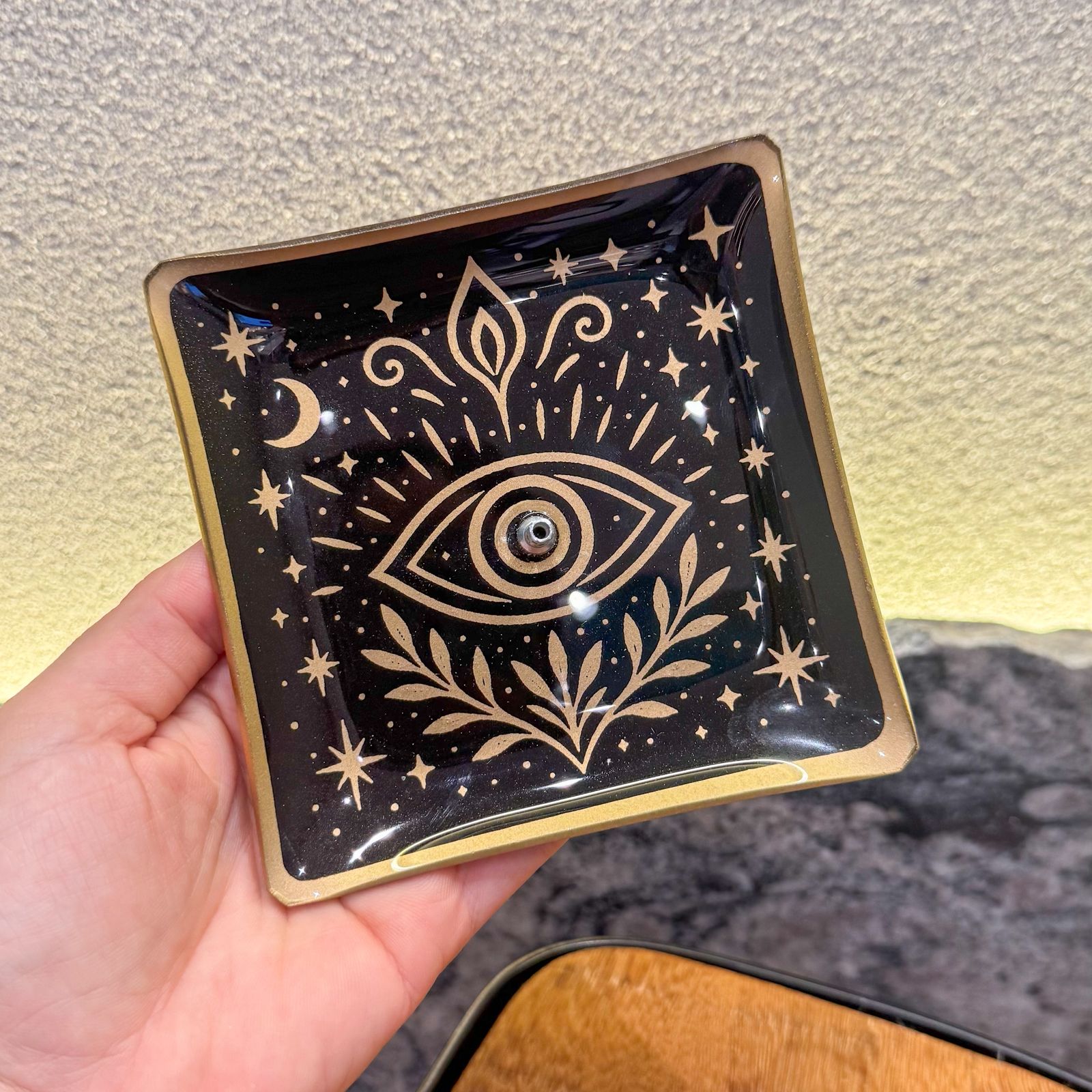 Incensário em Vidro – Olho Místico Dourado ✨🖤👁️