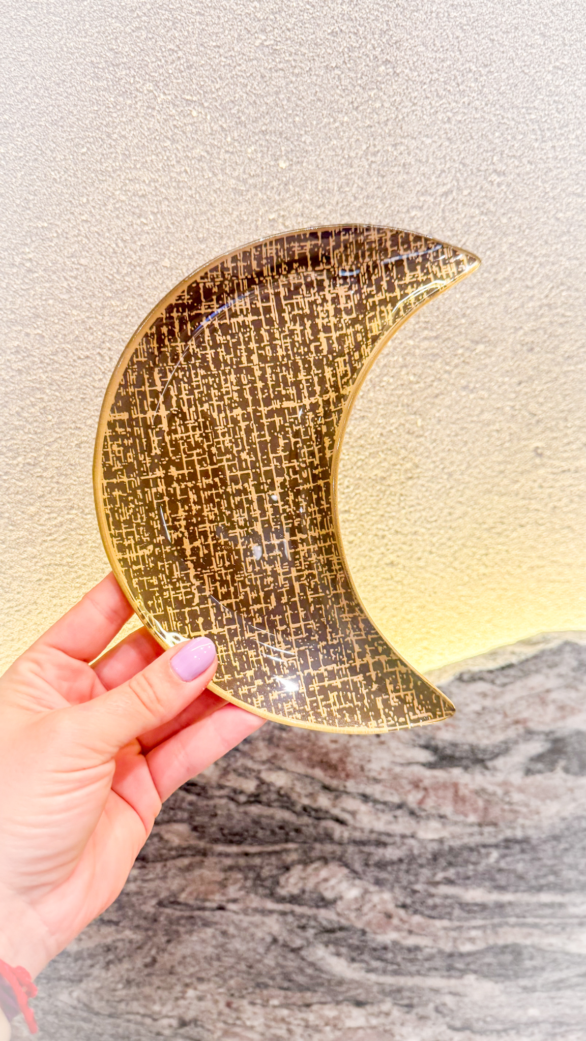 Base de vidro serigrafado em formato de Lua Crescente, serve para todo tipo de uso.
