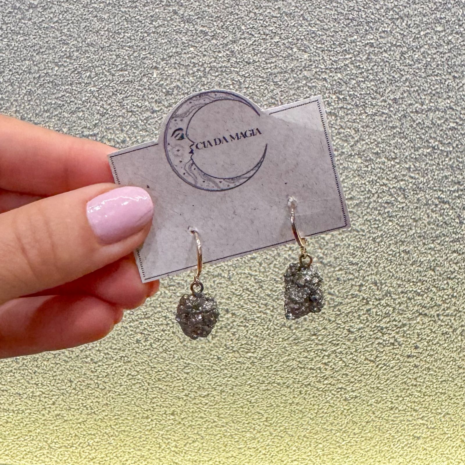 Brincos em Cristal Natural Pirita com Acabamento Dourado | Prosperidade e Poder Pessoal