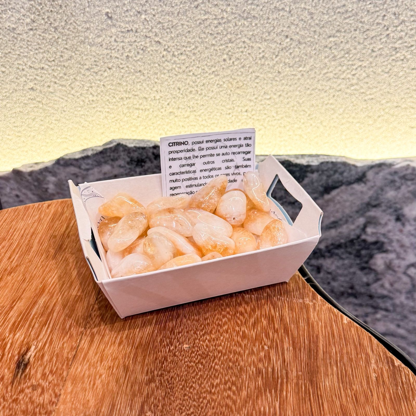 O Citrino é um cristal de forte energia solar, associado à prosperidade, à abundância e à vitalidade. Sua vibração intensa atua atraindo sucesso, alegria e movimento, sendo conhecido por sua capacidade de se auto recarregar energeticamente e também de energizar outros cristais ao seu redor.