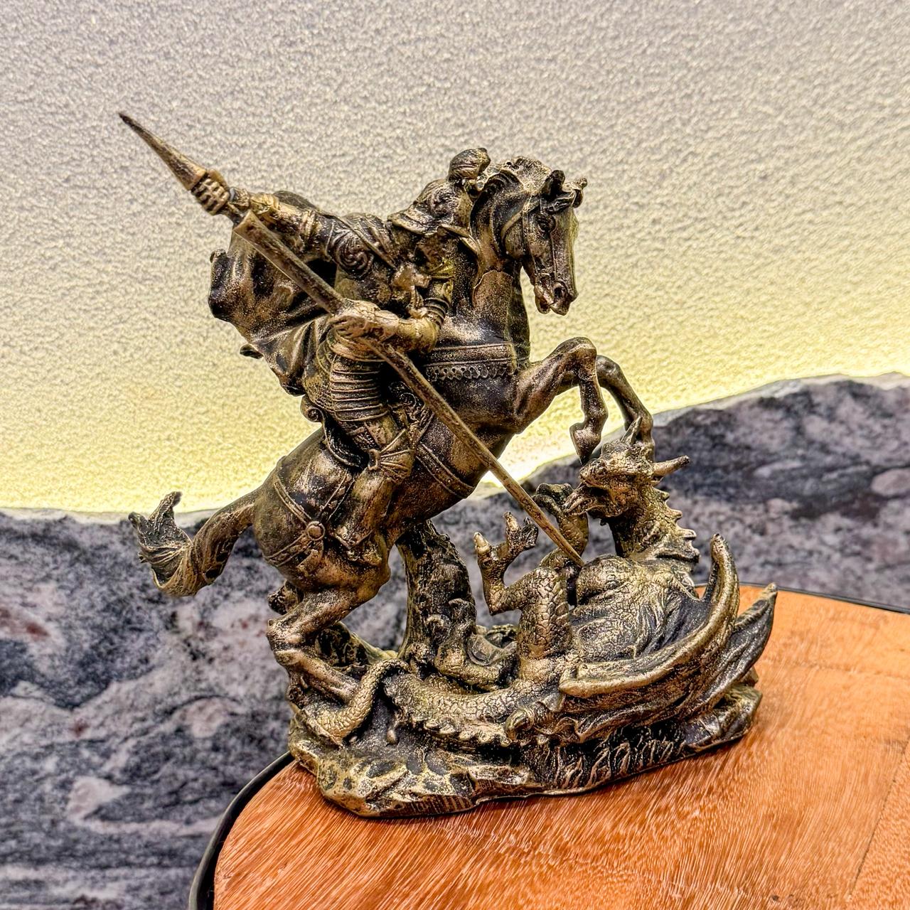 “Salve São Jorge, o destemido!” Sua imagem inspira bravura, determinação e confiança, fortalecendo a fé e trazendo segurança espiritual ao ambiente.