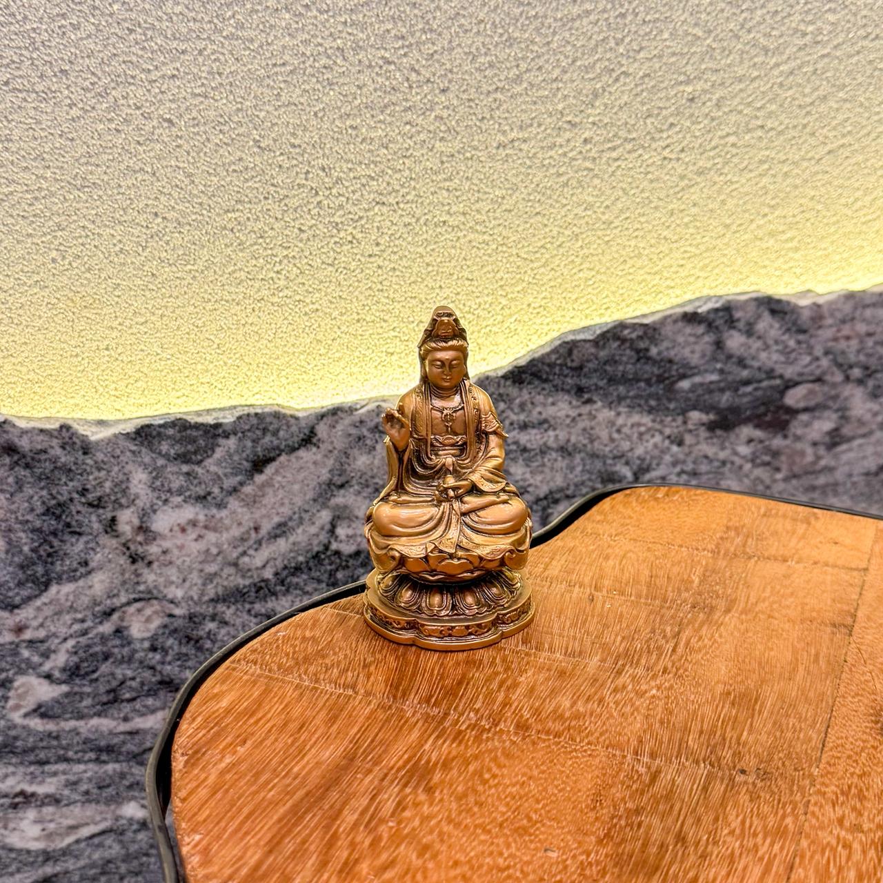 Sua energia é profundamente maternal e compassiva, trazendo conforto aos corações aflitos, promovendo perdão, compreensão e libertação emocional. Ter Kuan Yin no ambiente é abrir espaço para a ternura, a empatia e a transformação interior por meio do amor.