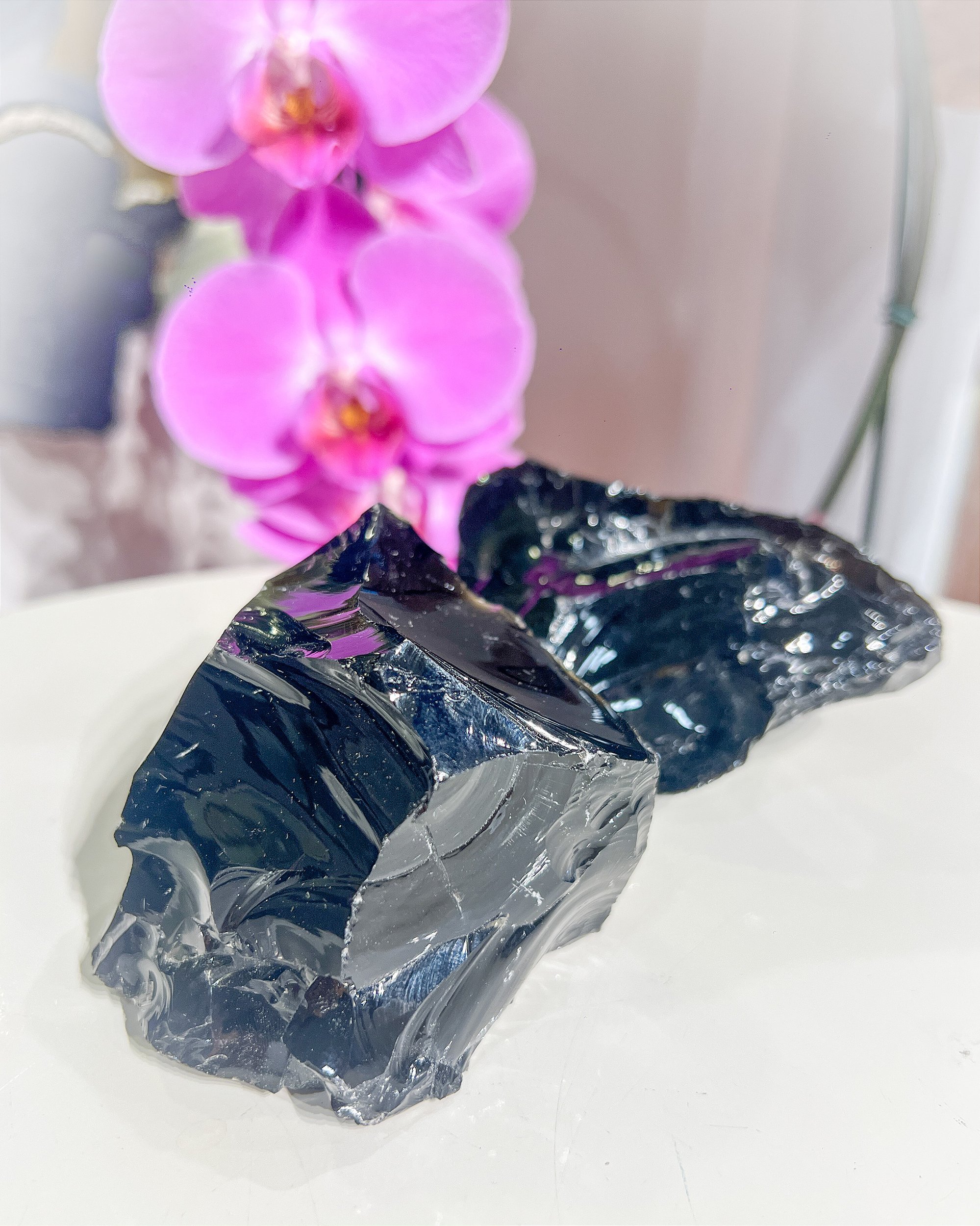 OBSIDIANA, são lavas vulcânicas resfriadas rapidamente - “fogo congelado” ou “vidro de dragão”. Traz consigo o conhecimento da terra, considerada uma das pedras mais espirituais, capaz de modificar a vida de uma pessoa através dos pensamentos e ações positivas. Elimina a autossabotagem nos auxilia a enfrentar os desafios.