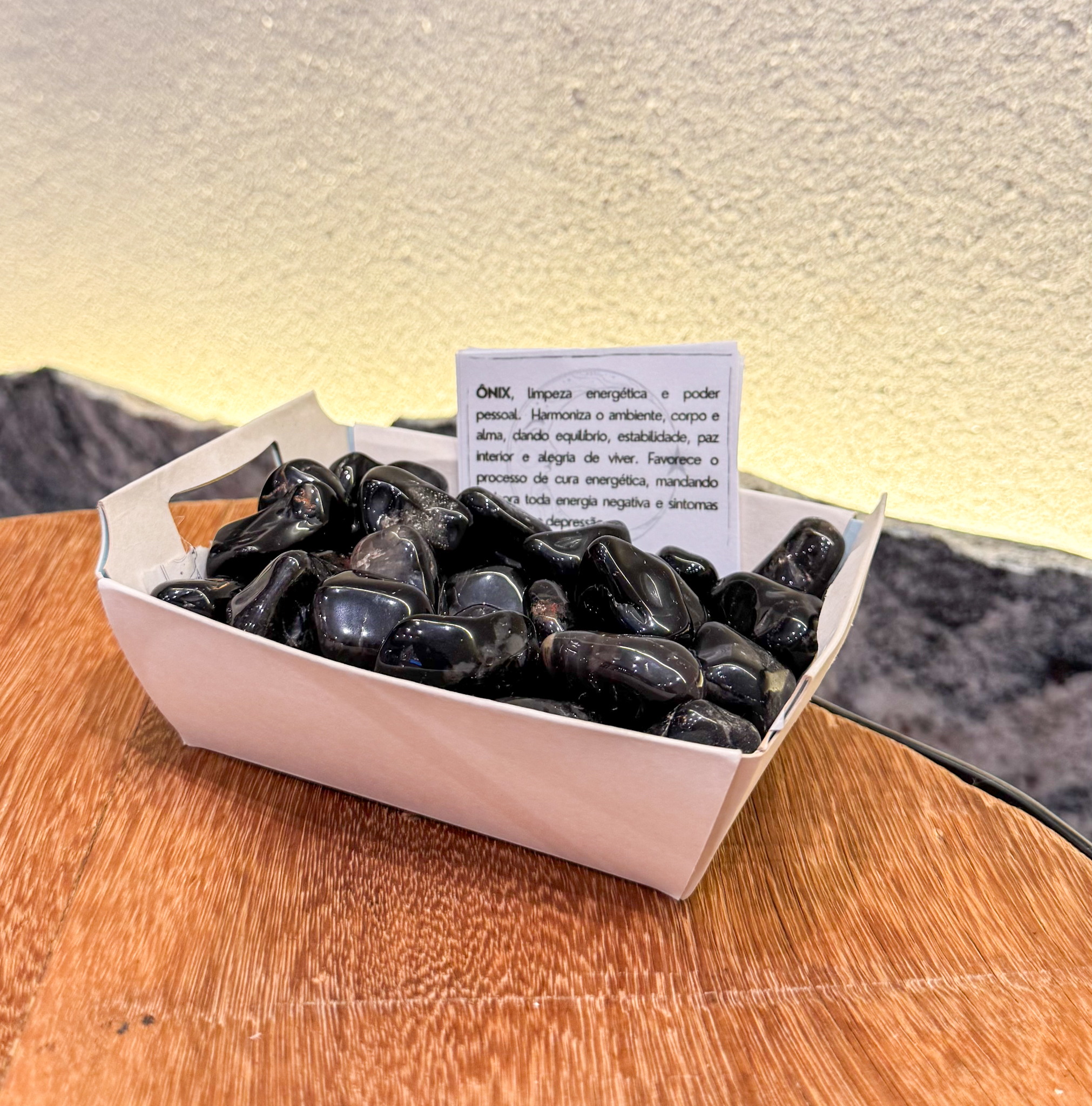 O Ônix é um cristal de limpeza energética e fortalecimento do poder pessoal. Sua energia atua harmonizando o ambiente, o corpo e a alma, promovendo equilíbrio, estabilidade emocional e paz interior.