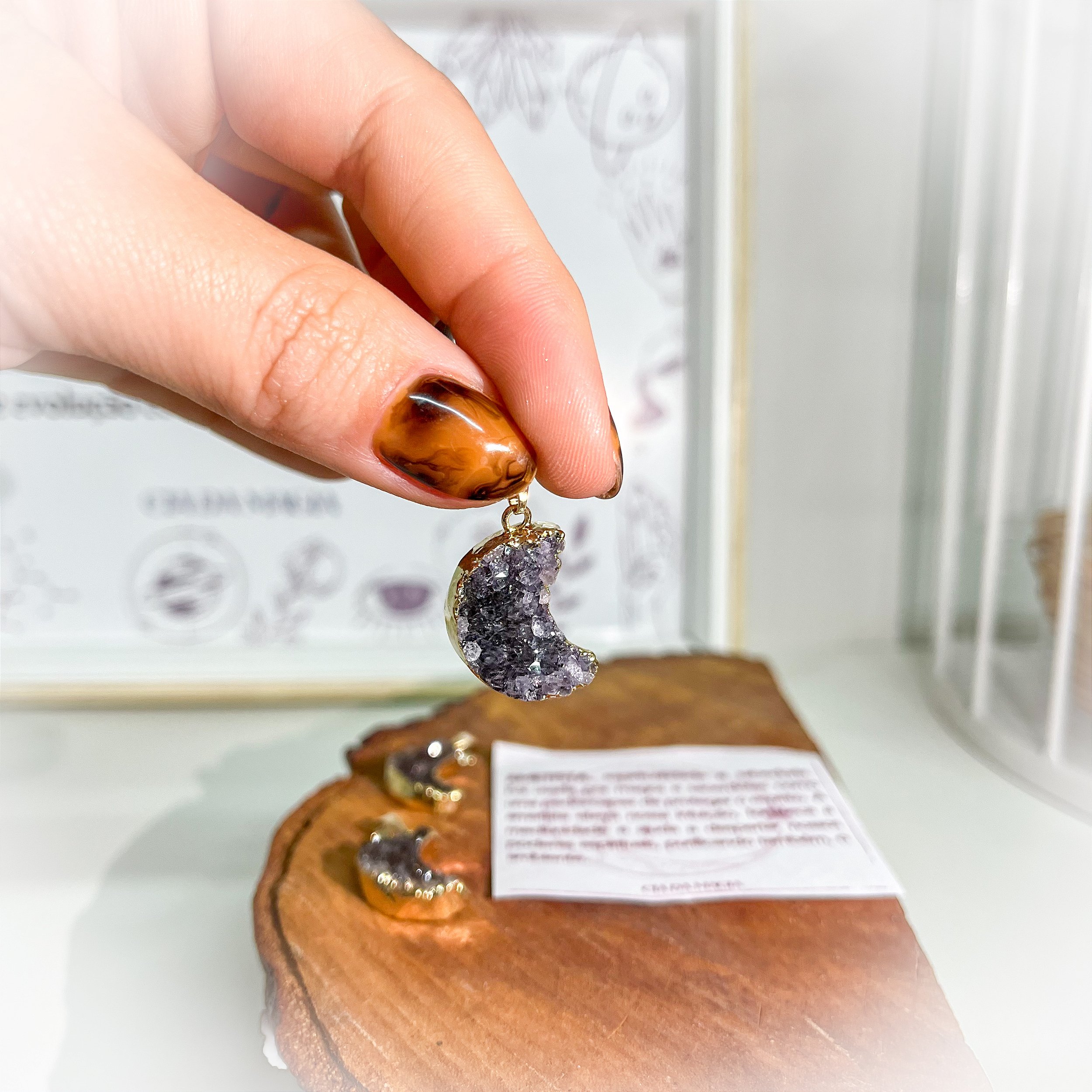 Pingente lapidado de Drusa Ametista Lua Crescente.