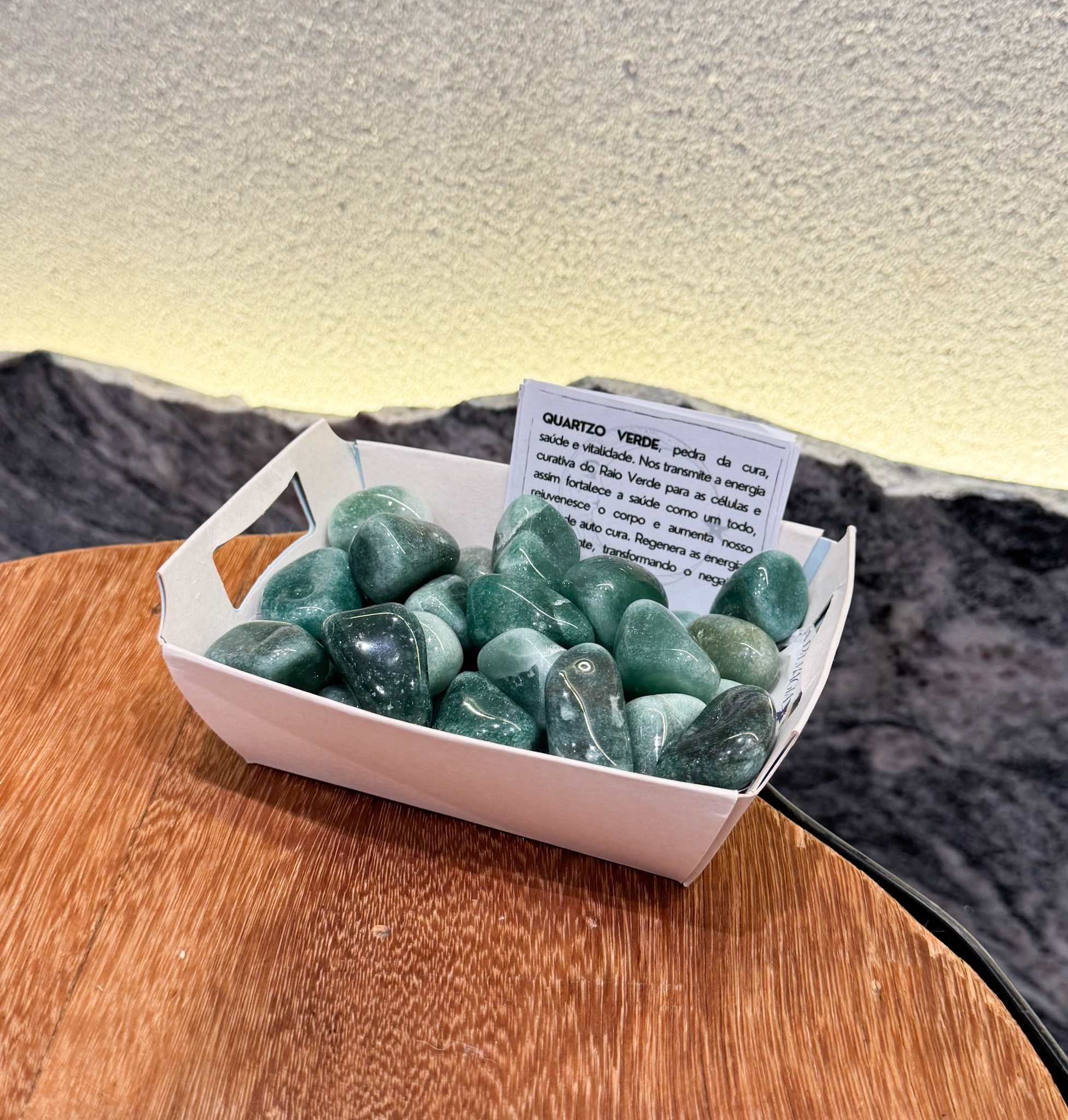 O Quartzo Verde é conhecido como a pedra da cura, da saúde e da vitalidade. Sua energia está associada ao Raio Verde, transmitindo vibrações curativas às células e fortalecendo o equilíbrio do corpo como um todo, auxiliando no rejuvenescimento e no aumento do poder de autocura.