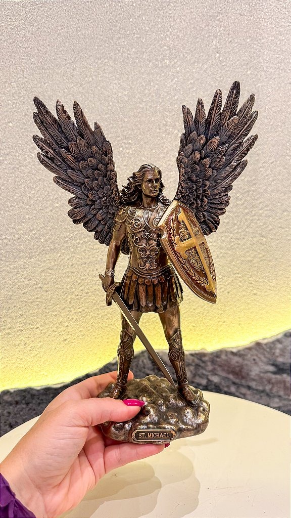 São Miguel Arcanjo com espada em Resina Veronese, rico em detalhes!