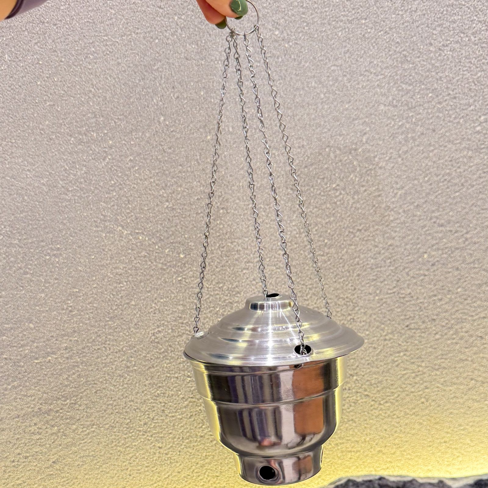 Produzido em alumínio resistente, é leve, funcional e durável — perfeito tanto para uso ritualístico quanto terapêutico.