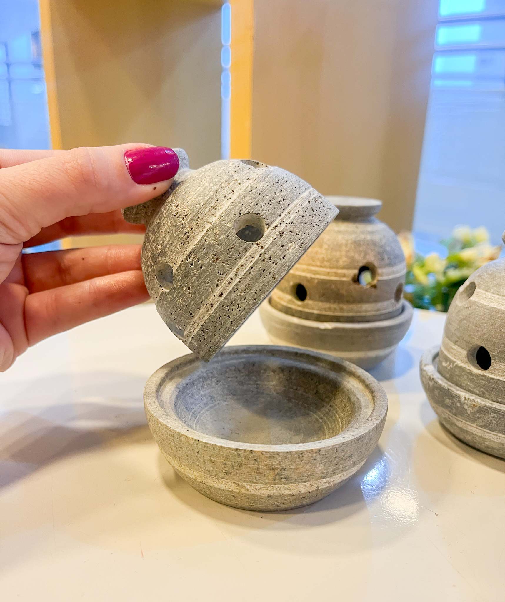 Turíbulo para defumação em pedra sabão